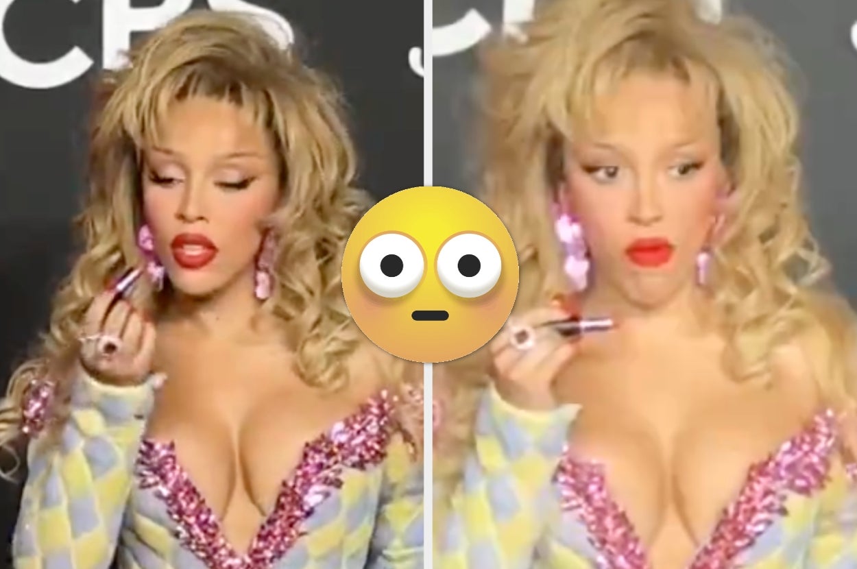 In another clip, a reporter asked Doja how the lipstick tasted, and she said, “Oh, it was delicious.” OK then!